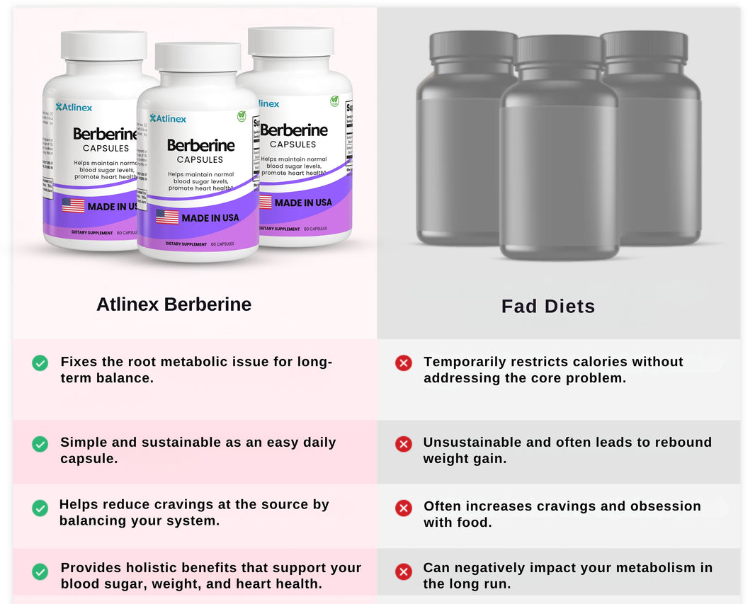 Fad diets are a temporary fix that often harms your metabolism in the long run, leading to rebound weight gain. Berberine is a sustainable approach that addresses the root cause of the problem. It helps to recalibrate your metabolism for long-term balance, so you're not just fighting a constant battle of restriction.