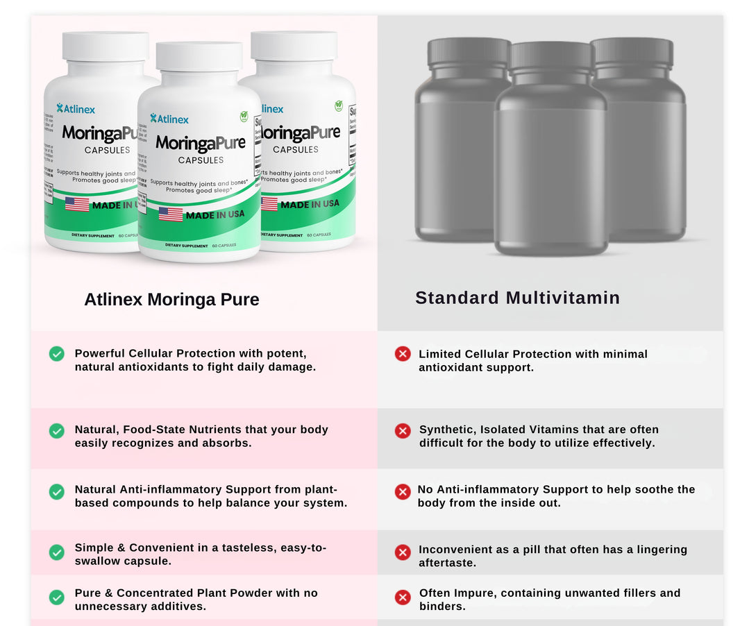A standard multivitamin often contains synthetic, isolated nutrients that can be hard for your body to absorb. Moringa Pure provides nutrients in their natural, food-state form, which your body recognizes and can use more easily. Plus, it offers benefits beyond basic vitamins, like powerful antioxidants and natural anti-inflammatory compounds that work together to protect your entire system.